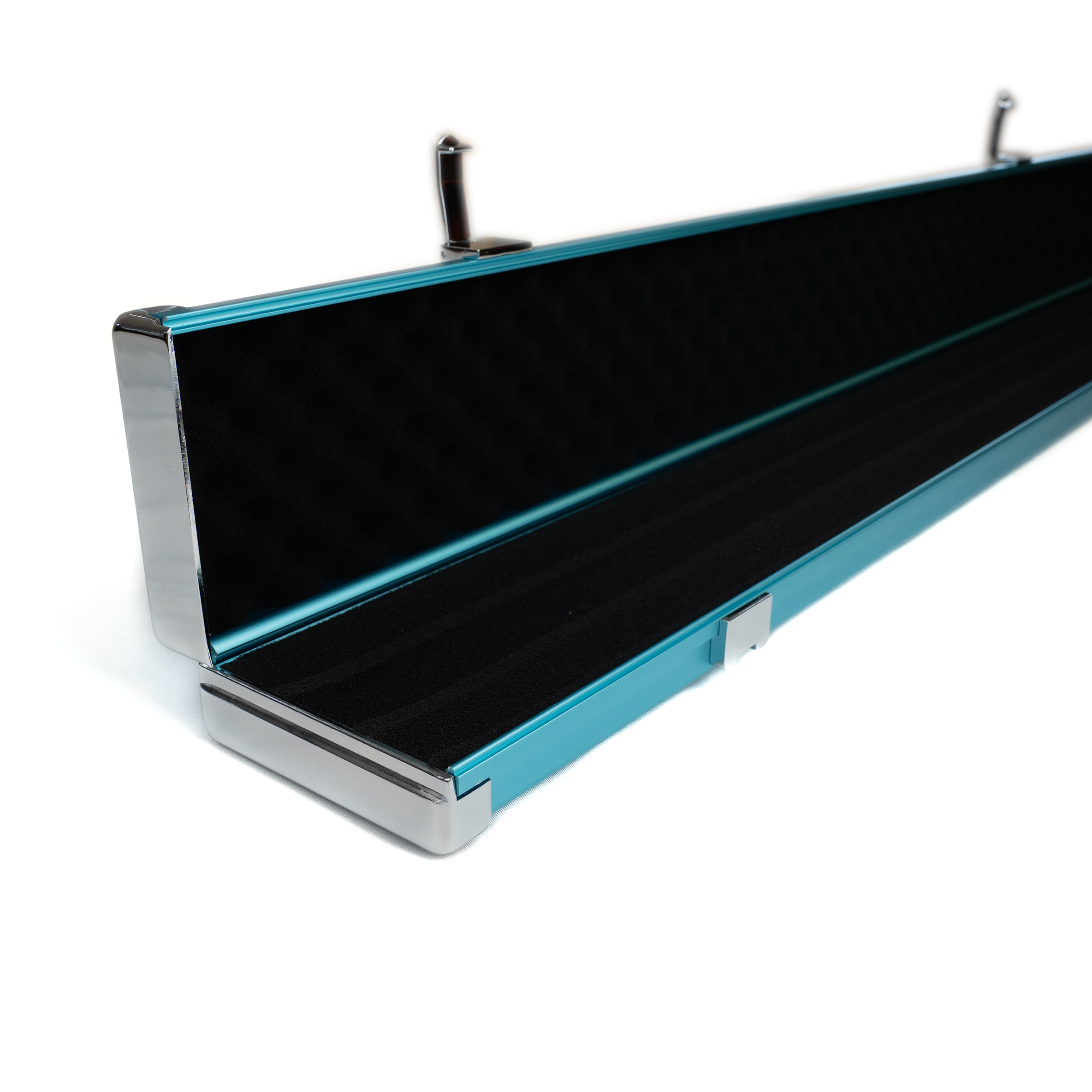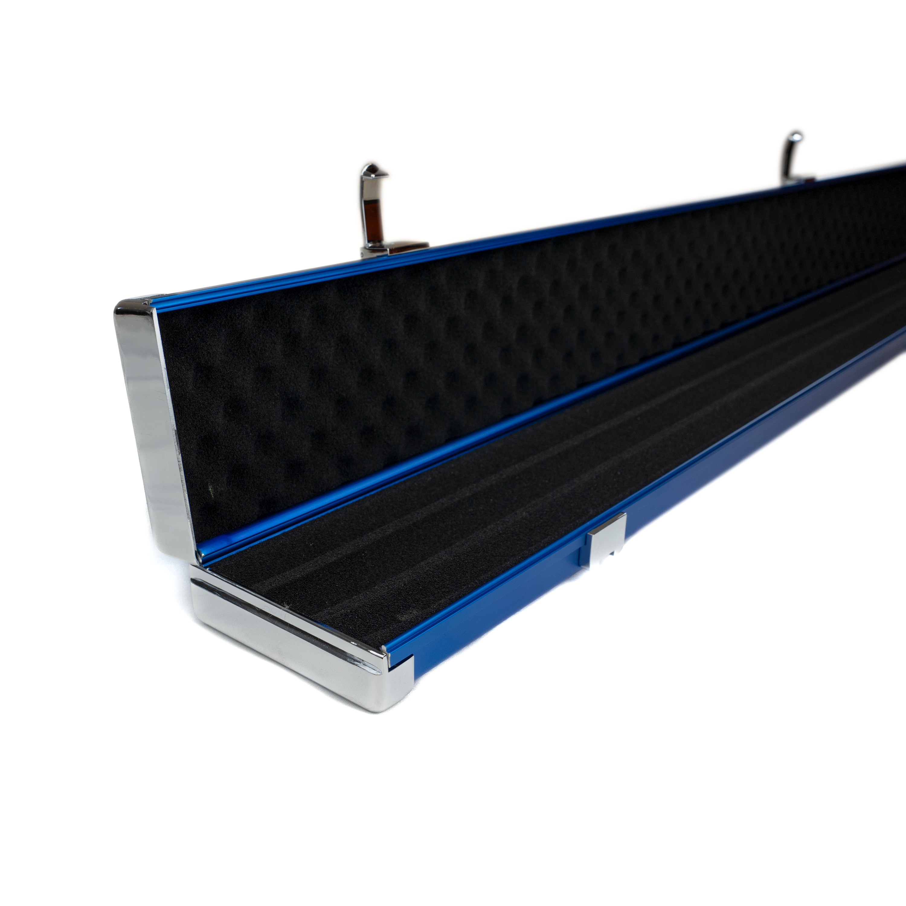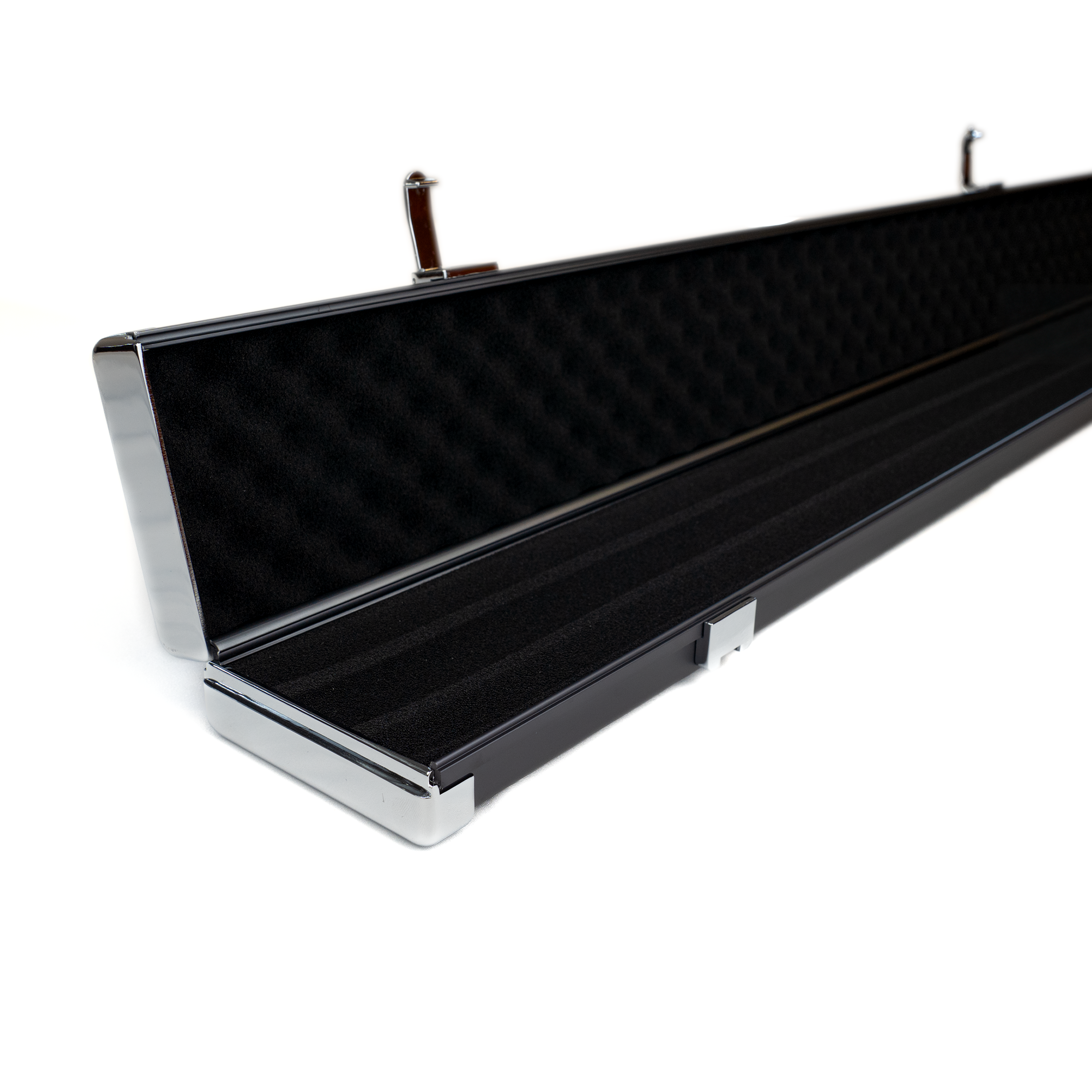 This alloy case has compartments for 1 ¾ cue plus butts/extensions or two ¾ cues.