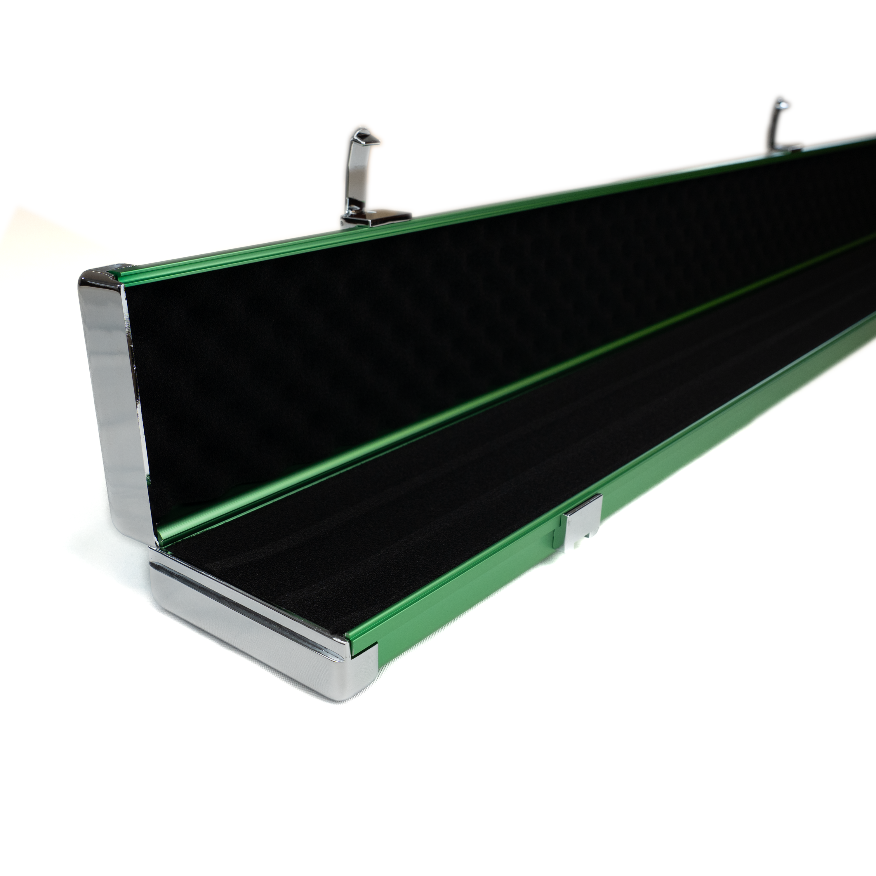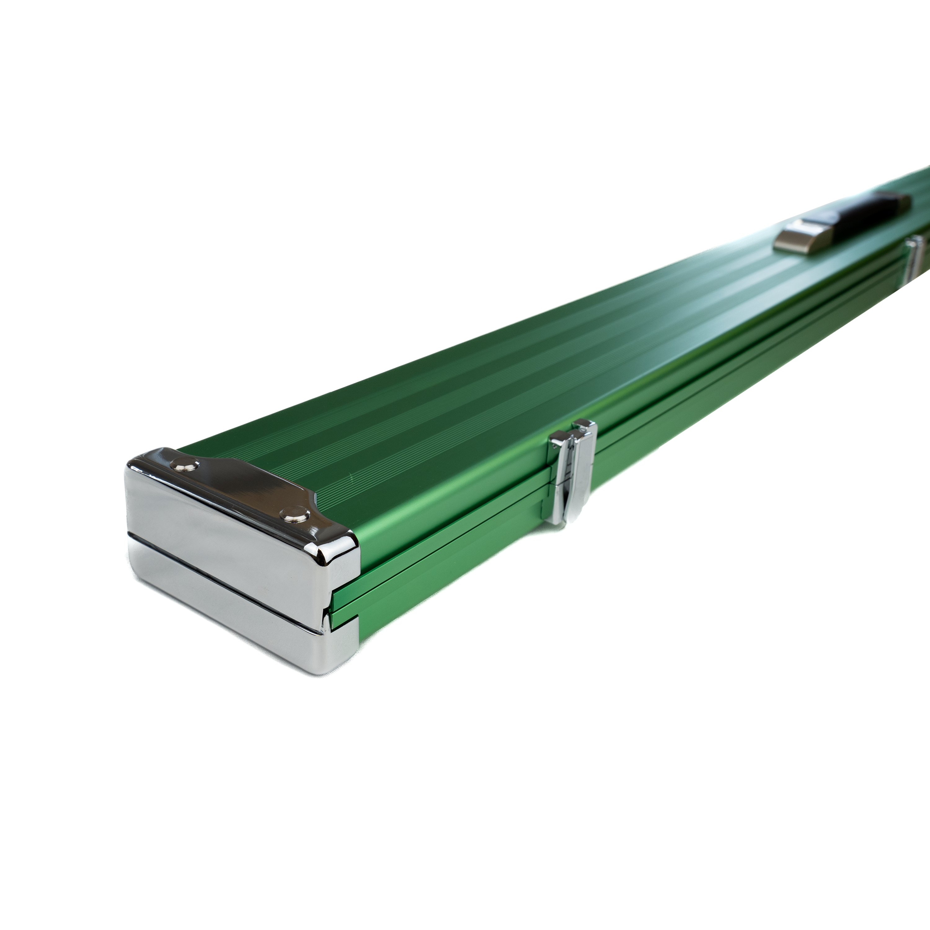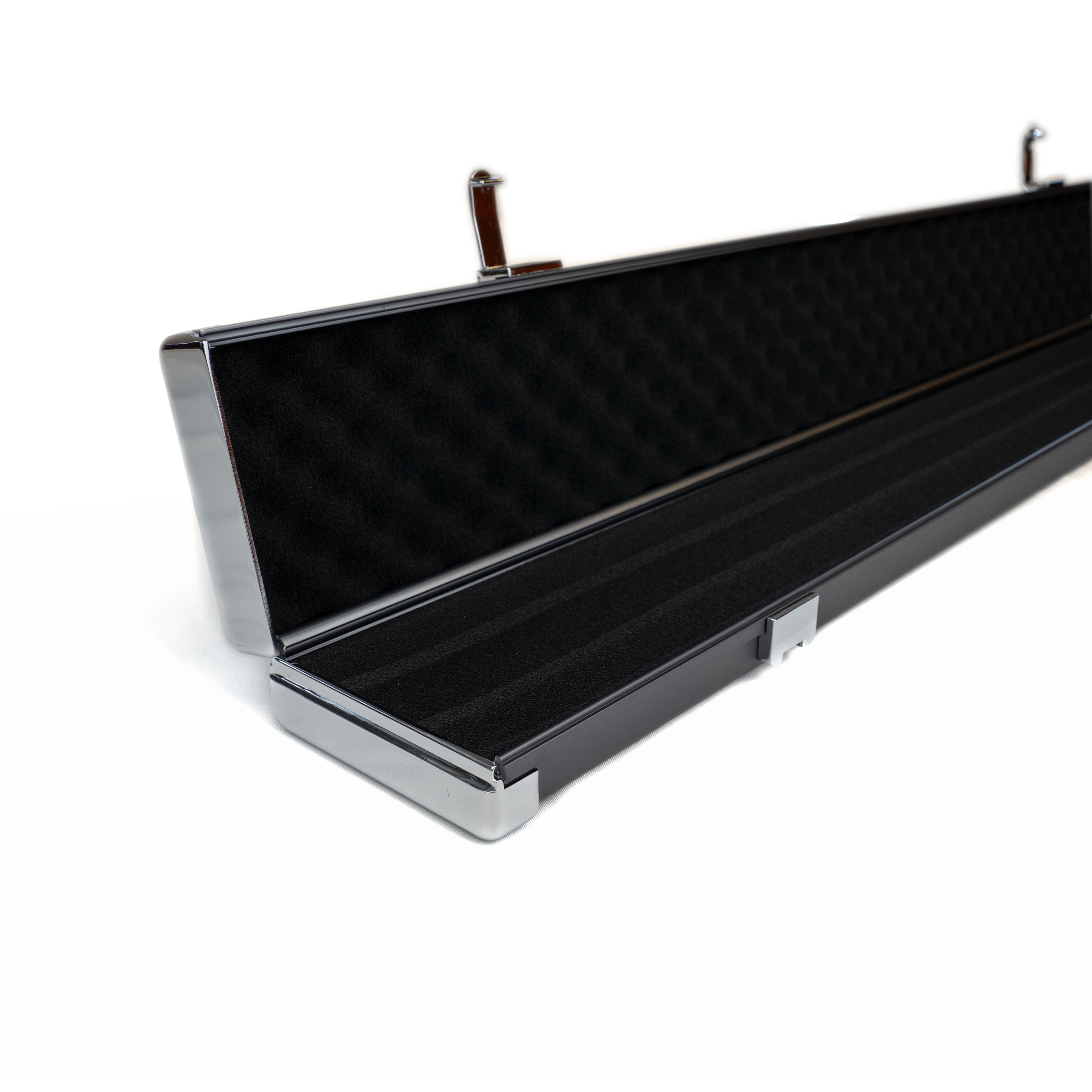 This alloy case has compartments for 1 ¾ cue plus butts/extensions or two ¾ cues.